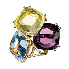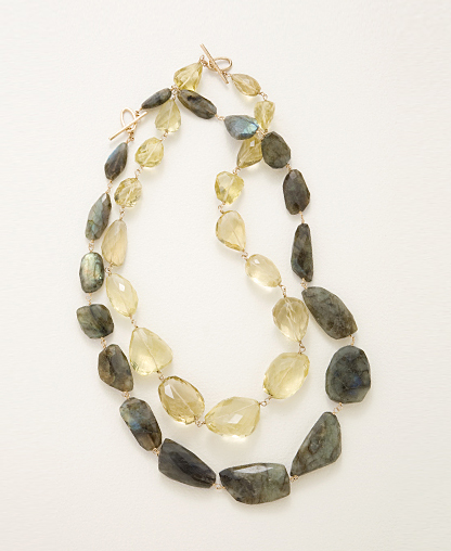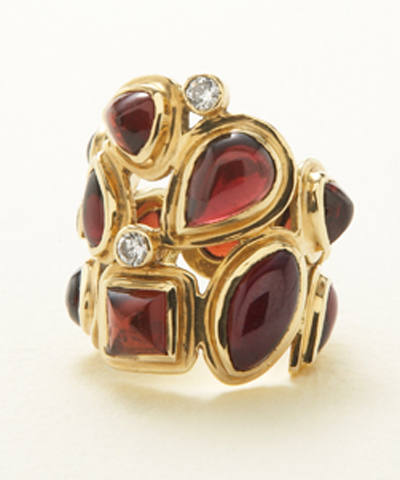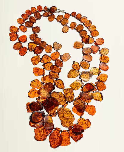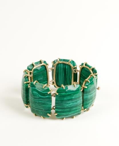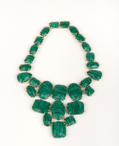 Dressed up or semi-casual the versatile jewelry is also versatile in fitting a range of budgets. The Dark Amber Bib Necklace Set with “petals of luminous dark colored faux amber” would be a treasured piece at $450 or you could splurge on the Malachite Dramatic Bib Necklace at $8,800. (See the picture gallery below for these and other necklaces, rings, earrings and bracelets)
