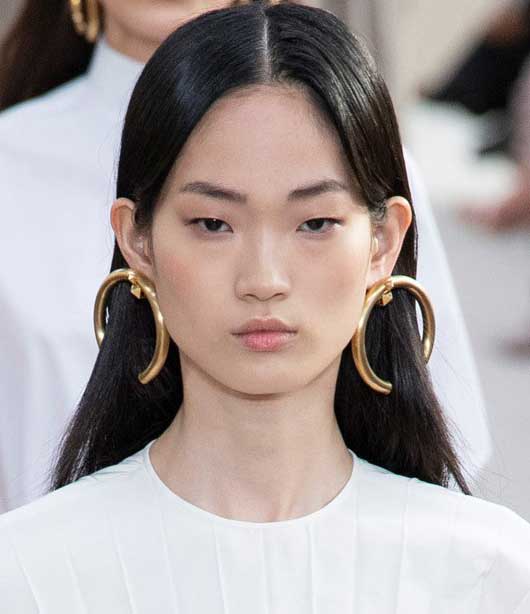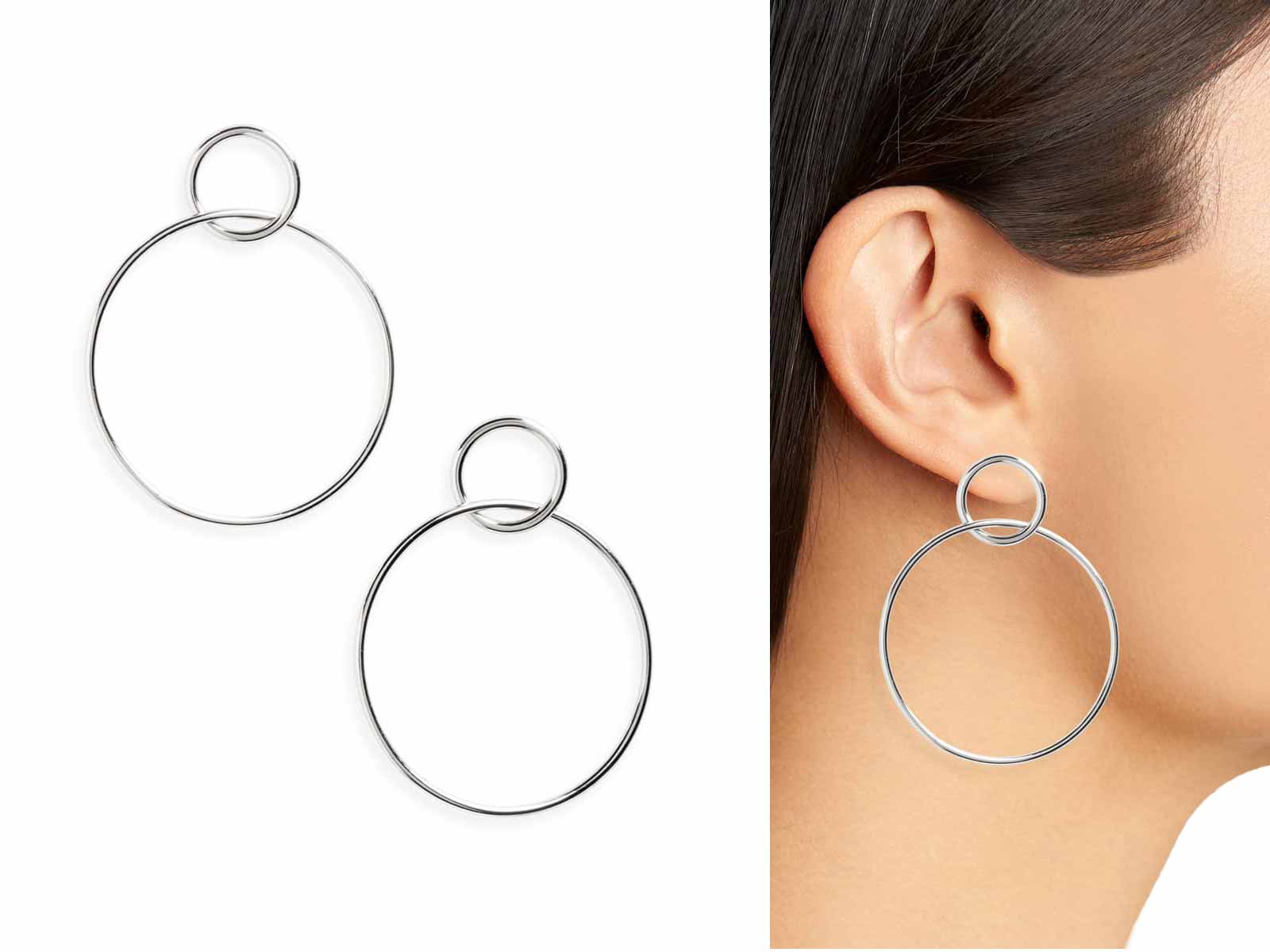 Trends in the shape, style and size of hoop earrings vary over the years but hoop earrings never go out of style. See some of the signature runway jewelry looks that featured this staple earring and read on further to see examples of similar statement hoop earrings from Nordstrom, Nordstrom Rack, Free People and other retailers. Get inspired by the looks of glam runway jewelry.