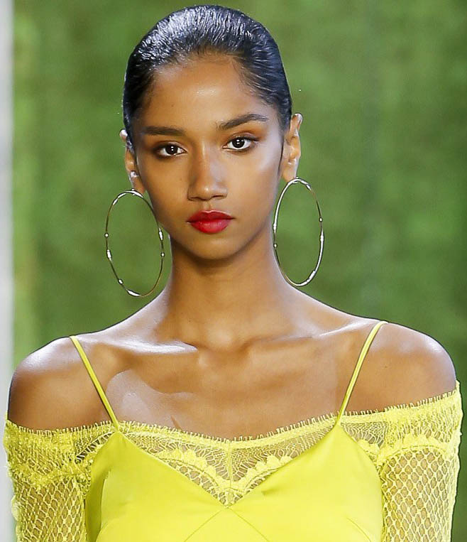 Cushnie and Ula Johnson featured the classic unadorned, hoop earring on the runway as bold, large sweeping hoops or thick hoop earrings.