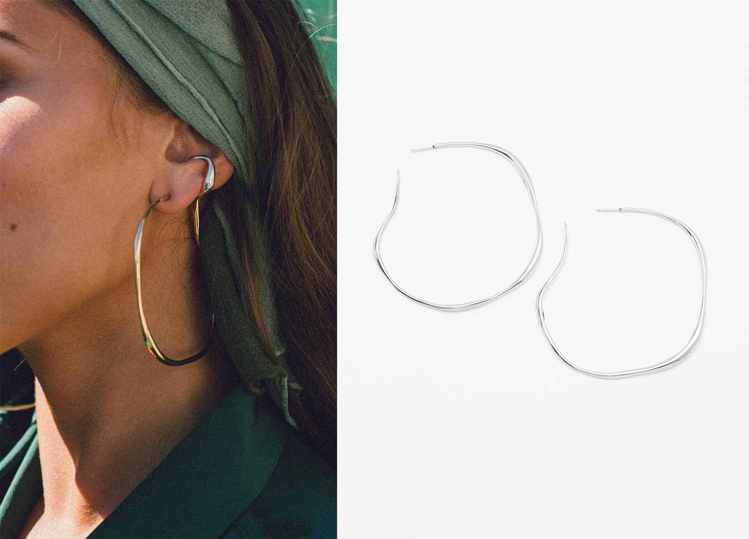Seen on the runway: crescent hoop earrings in which the hoop is interrupted. There are some interesting hoop earrings that play on the