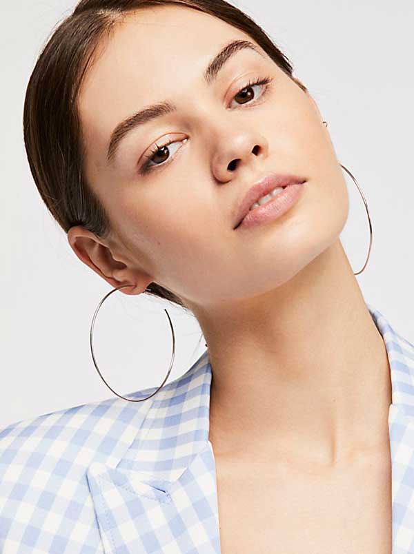 Whether you wear your hair in a short style, have longer hair or wear your long tresses in an updo –  bold, large hoop earrings are a go-to for statement earrings. No embellishments or extras needed! Size makes the statement for these earrings.