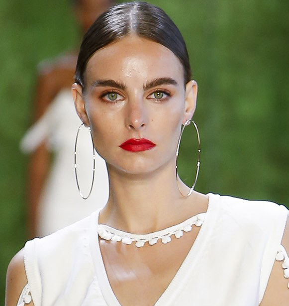 Cushnie and Ula Johnson featured the classic unadorned, hoop earring on the runway as bold, large sweeping hoops or thick hoop earrings.