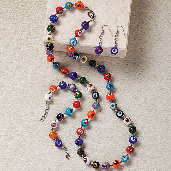 These pieces – millefiori bracelet, necklace and  earrings and are sold by the Smithsonian Museum  store.