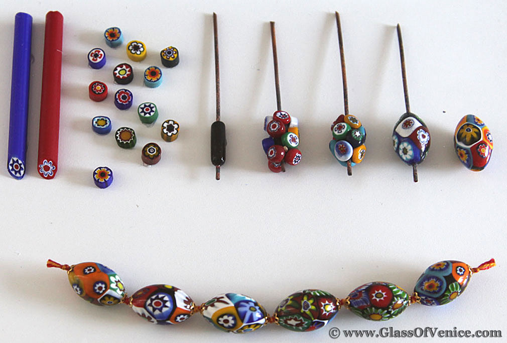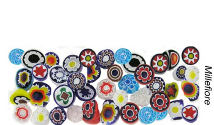 The technique for making these beads was lost by the eighteenth century but rediscovered in the nineteenth century. Millefiori (also called murrine or murrini) is a subset of Murano glass produced by the artisans of the Venetian island of Murano who have a centuries-old tradition of quality glass-work.