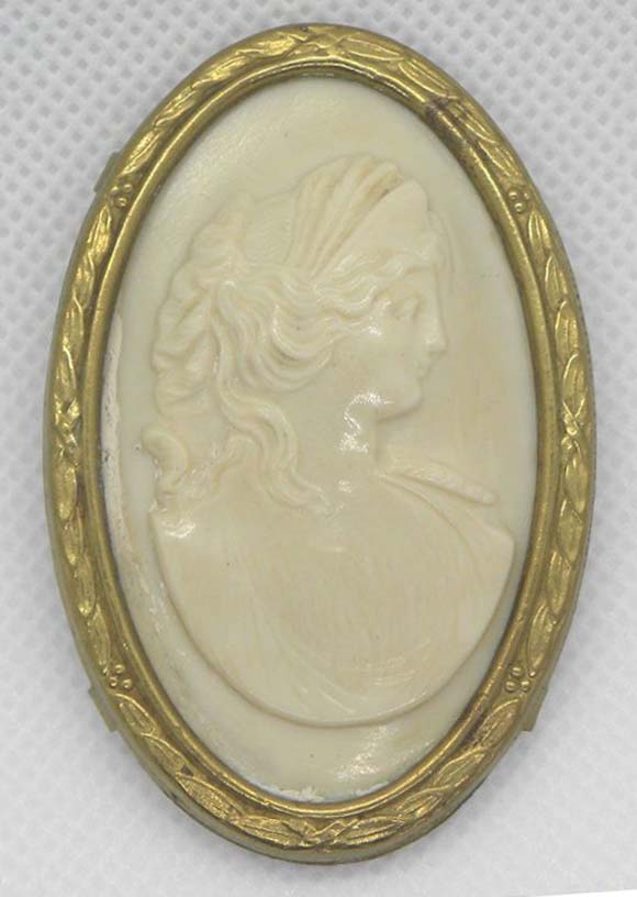 In the late 19th century, brooches were often carved out of ivory and celluloid plastic was an affordable and eco-friendly alternative to the more expensive ivory. As a matter of fact the celluloid used to make jewelry was sometimes called “Ivorine” or “French Ivory” (for a type of celluloid developed in France to mimic the look of ivory).